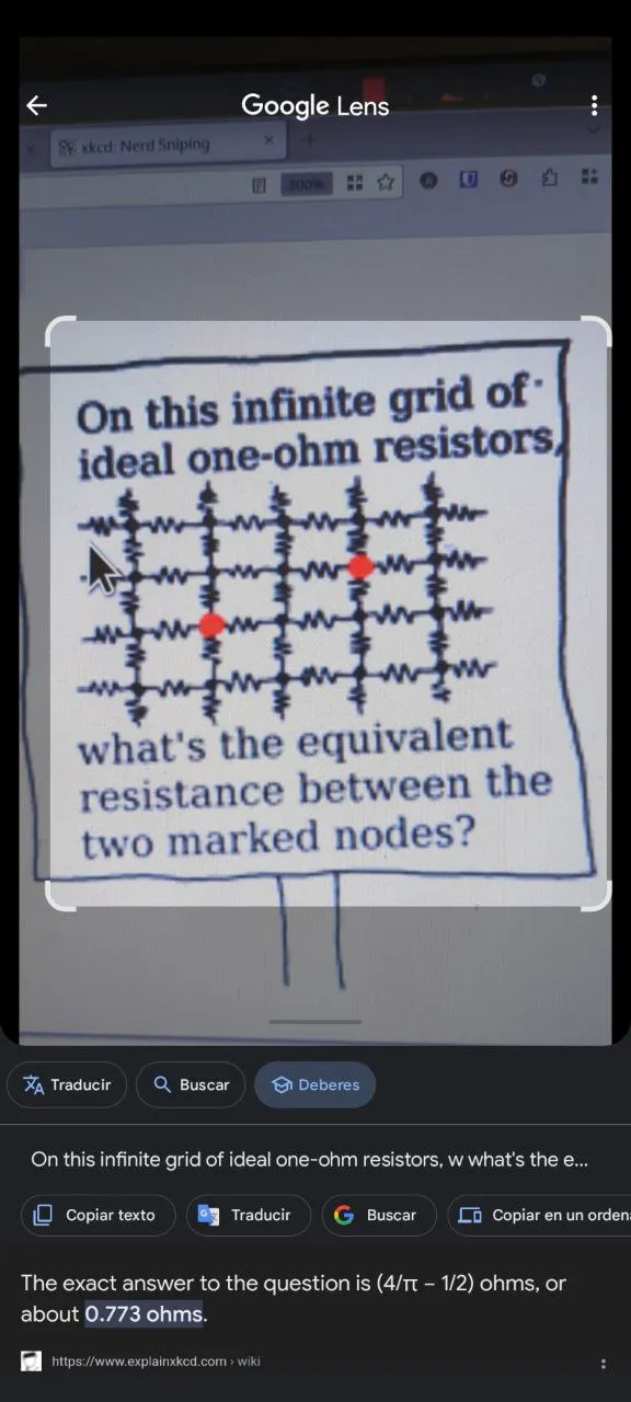 El botón "haz los deberes con tu cámara" de la aplicación de Google dice muchas cosas. Pero al menos no tiene un huevo de pascua que hace que te arrolle un camión... y da la respuesta correcta ( www.explainxkcd.com/wiki/index ).