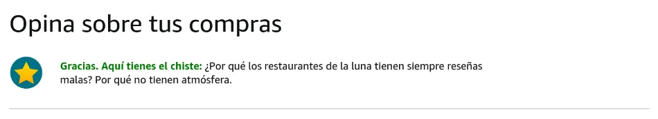 ¿Amazon va por ahí provocando para que la gente ponga reseñas cachondas? No sé yo si es una estrategia efectiva.